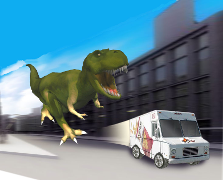 Nevertheless, it would be interesting to play this Tyranosaur vs. Doritos truck game.... what about a 16 player mode with 8 dinos and 8 trucks? hmm...