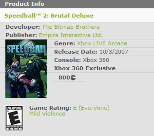 A poster under the moniker "Stevie D 1969" over at the Xbox360Leagues.net forums has declared that Speedball 2: Brutal Deluxe will release this week (aka tomorrow) next to Tetris Splash. How does he know? Probably because of xbox.com which is listing the game's release as 10/3/2007.