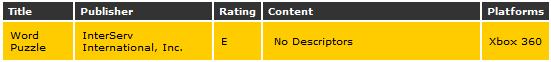 Another day, another ESRB rating. Word Puzzle comes in at E for Everyone. Cue the painfully long waiting period before the game actually releases.